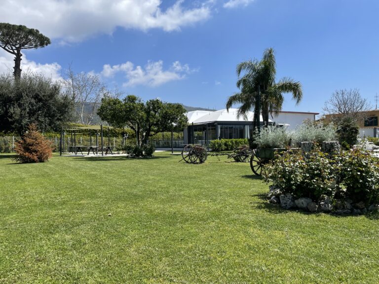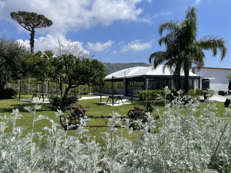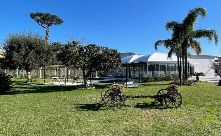 La location è situata in uno splendido giardino con alberi da frutto ed una playarea per bambini, la sale è arredata con stile ed eleganza